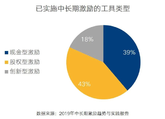 o调研数据:实施中长期激励工具的企业中,43%的企业选择股权型激励,39%的企业选择现金型激励;