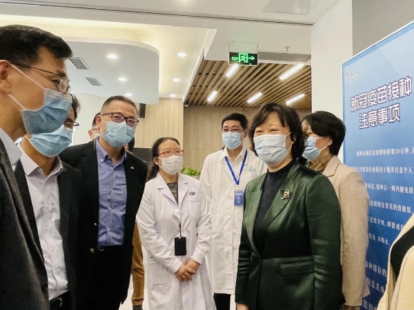 2021年3月29日,中智上海公司卫生所作为徐家汇新冠疫苗临时接种点,正式开放营运,上海市徐汇区副区长秦丽萍一行赴现场指导,中智上海公司党委委员、副总经理兼董事会秘书陶骏接待来访。