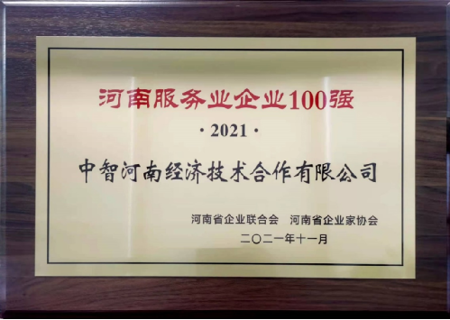 中智河南公司荣获“2021河南服务业企业100强”